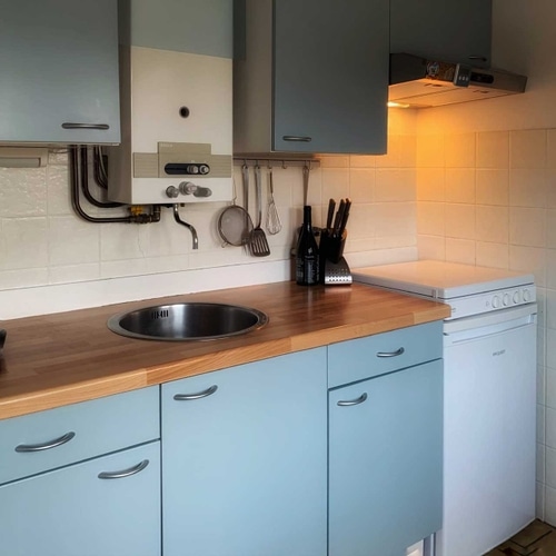 Das Badezimmer ist mit WC, Waschbecken und Dusche ausgestattet. Außerdem hat das Haus eine vollständig eingerichtete Küche. Beide Räume befinden sich im Erdgeschoss.